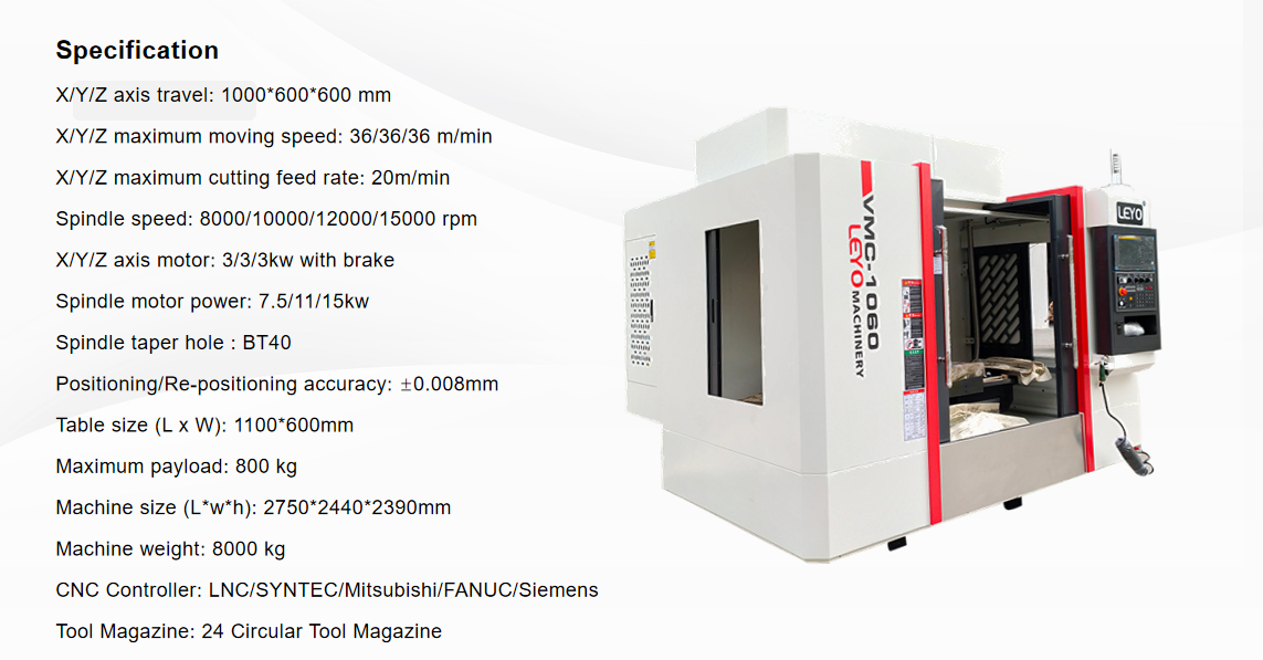| Технические параметры вертикального обрабатывающего центра LEYO VMC1060-VMC1165 | |||||