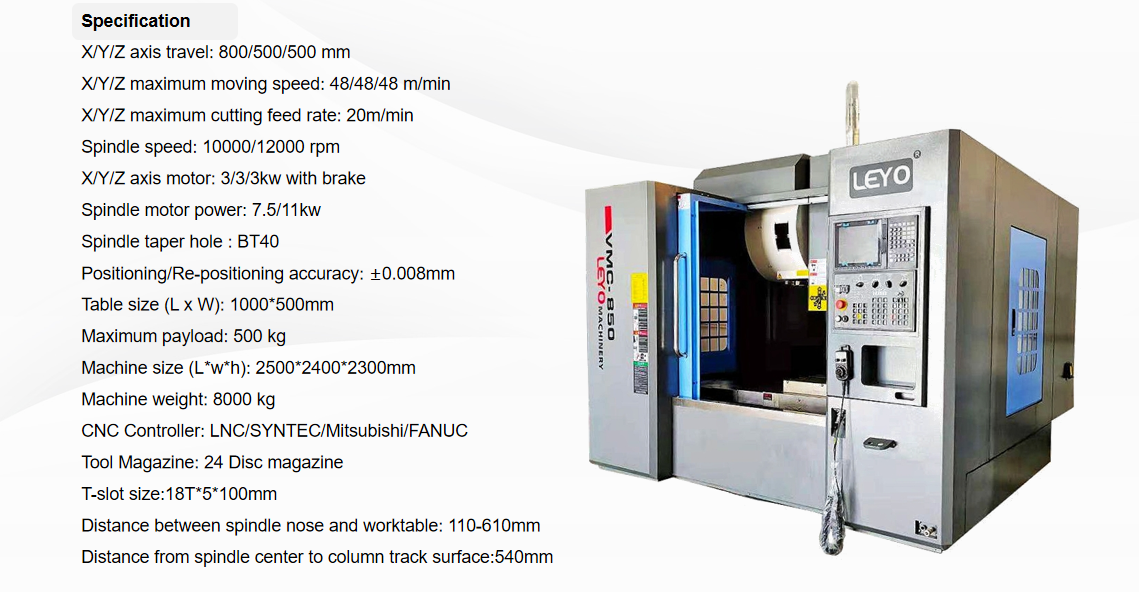 | Вертикальный обрабатывающий центр LEYO VMC650-966 Технические параметры | |||||||